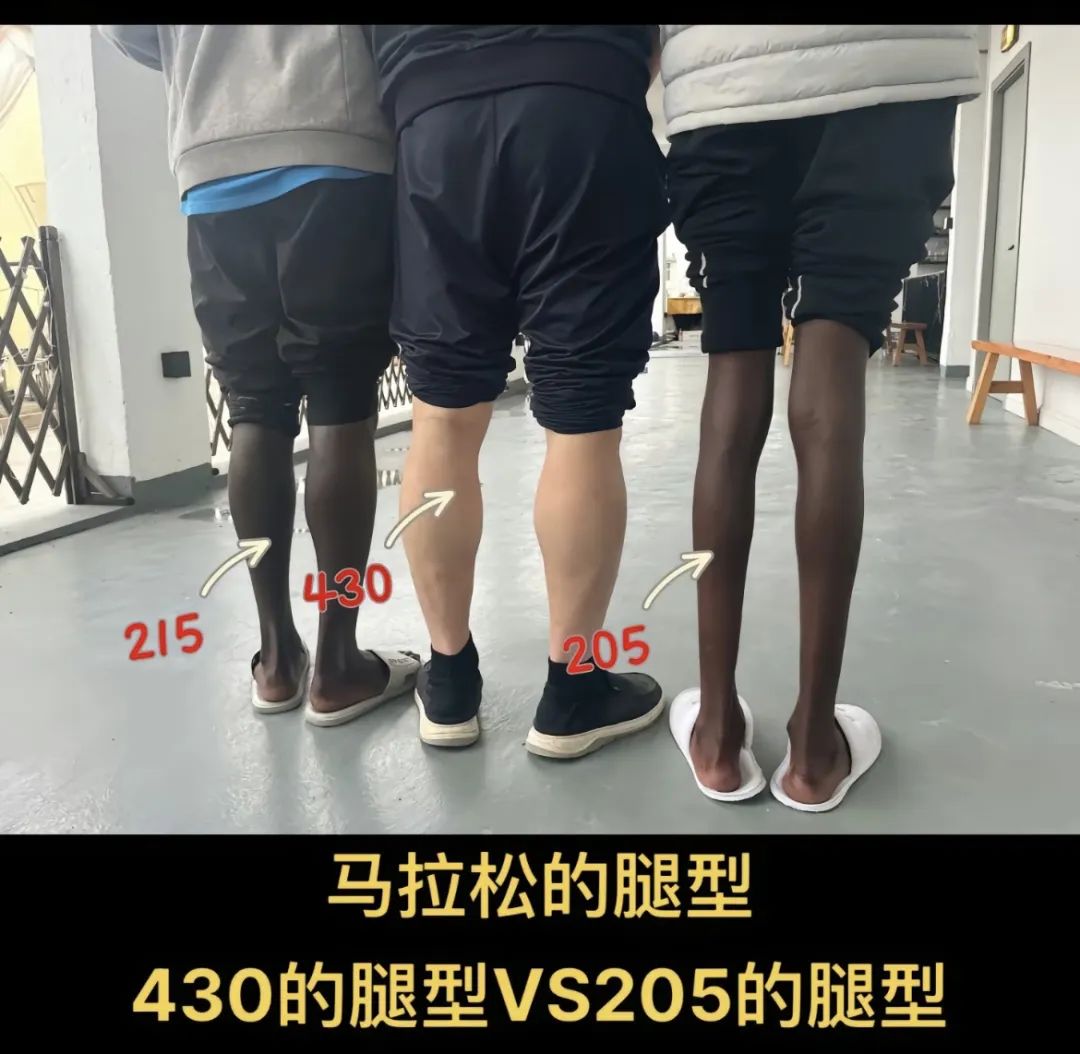 我们可以明显看到,马拉松205运动员的小腿明显要细上不少而且比一般人要长许多。