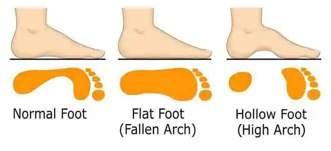 最直观的办法,就是你把脚底沾上水踩在可以观察到印迹的平面上,正常的脚印中间会空出来一块,扁平足就完全没有空余空间。