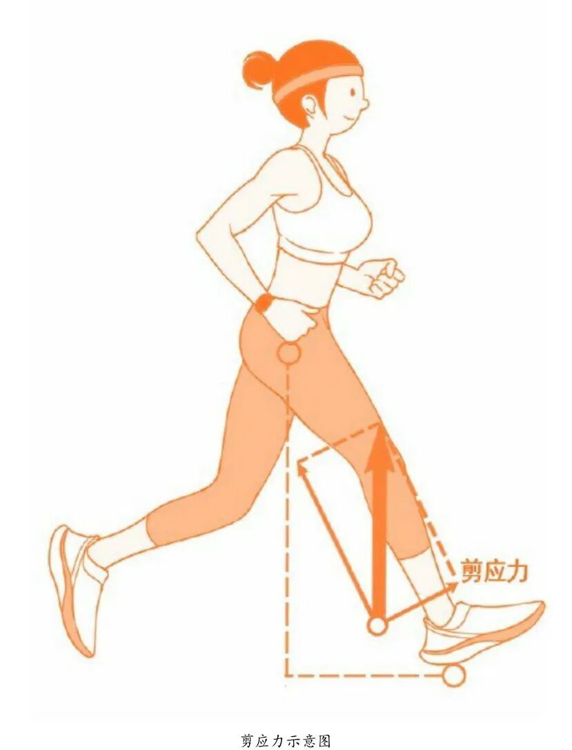 因为钉子的结构决定了他们只能受到和它们平行的力。同理,你的腿就是那根钉子,过度跨步时,你的脚着地时承受的冲击力就像一把锤子砸了过来,出现剪应力。