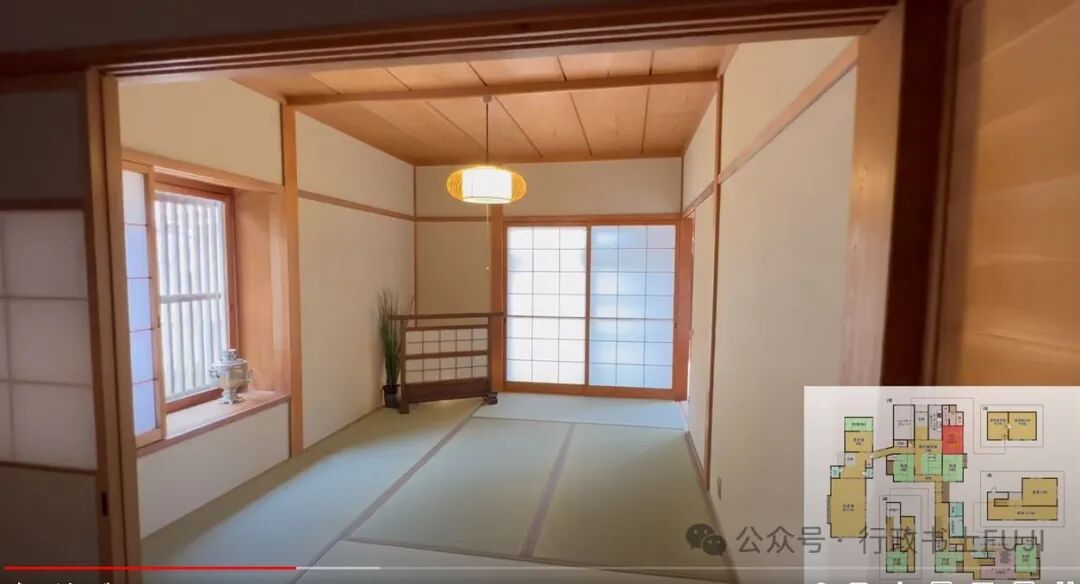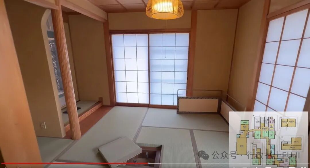 ☝走廊的尽头是间茶室。为什么这间和室说是茶室,因为和室中间挖出了一个专门可以放茶炉的小地炉。