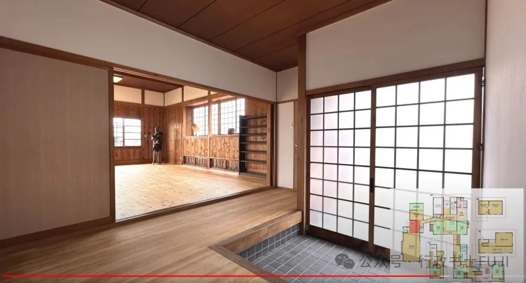 之所以这里另外做了玄关,是因为这座建筑其实是个道场!所谓道场就是修行馆,维基百科翻译成武馆。这里的确曾是剑道用的道场。