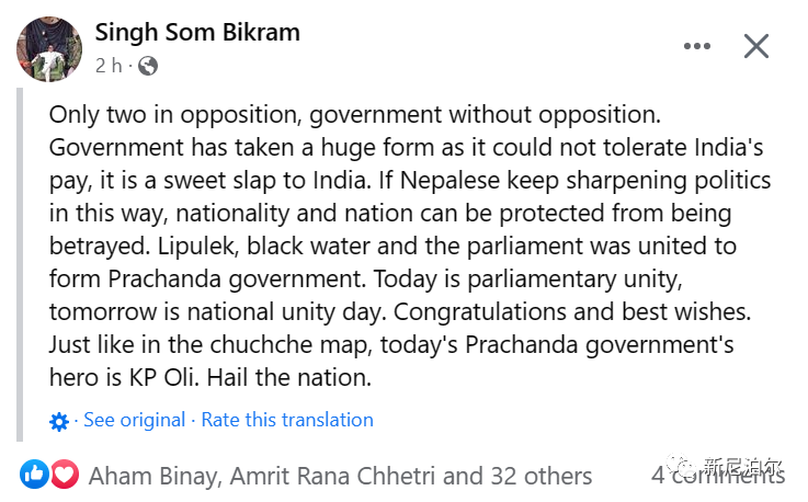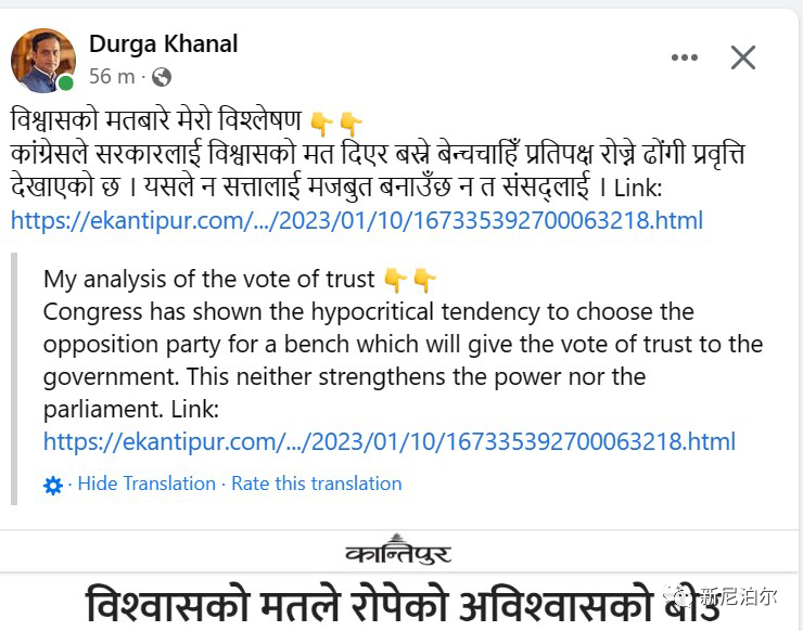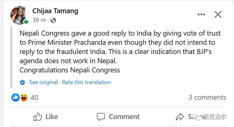 当然,也有人表扬大会党,说大会党没有听印度的话,它投票支持普拉昌达,表明印度执政党BJP在尼泊尔搞的那一套行不通了。