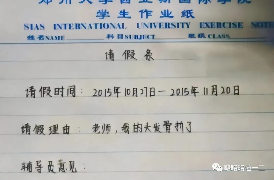 不得不说这些大学生请假理由着实是让人耳目一新,把当辅导导员的略略我都整不会了:居然还可以这么请假?写的很好,快去上课。