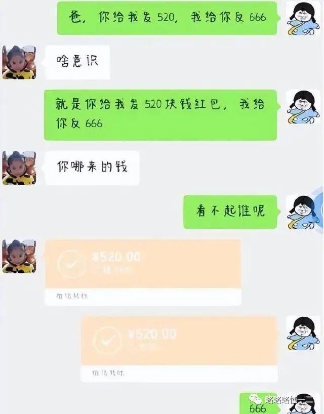 一个“520”的转账就来了,女儿算是把爸爸吃透了。