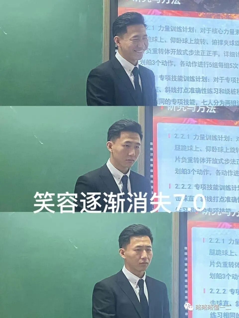 一听到老师的问题整个人直接就不好了,原有的帅气笑容瞬间就没有了。