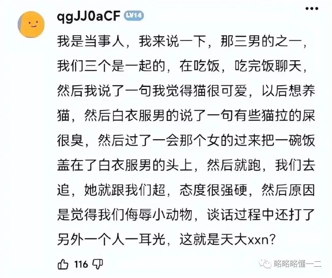 是怎样一回事呢?简单说,三个男生在食堂吃饭,谈论到养猫时。