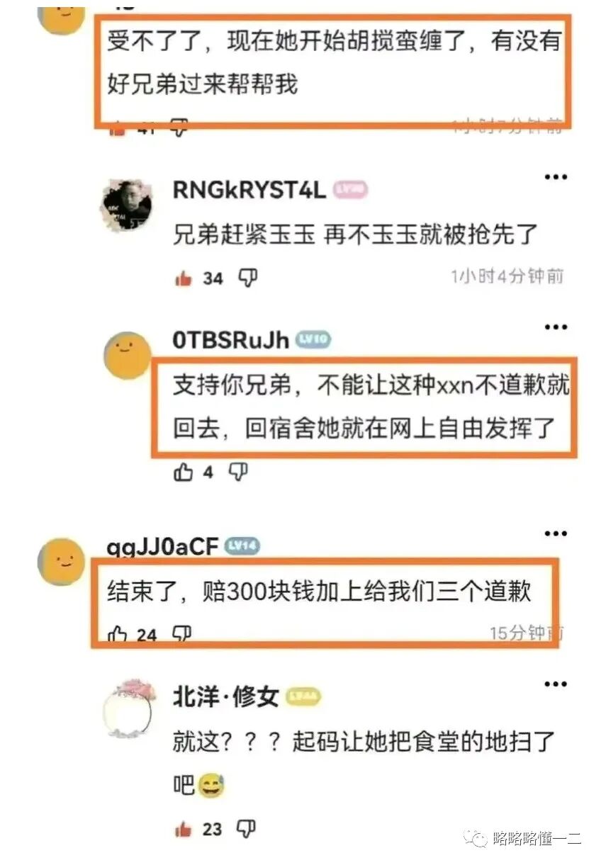 那么至于三位男生,你们就多担待吧!不要欺负弱势群体,人家赔礼也道歉了不是?