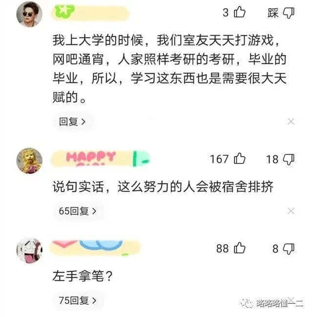 不肯定别人的自律,不认同别人的选择,关注点却在人家的左手拿笔,或者是瞎猜测说是学霸一次过关在放松玩游戏,学渣考试没过准备补考中。
