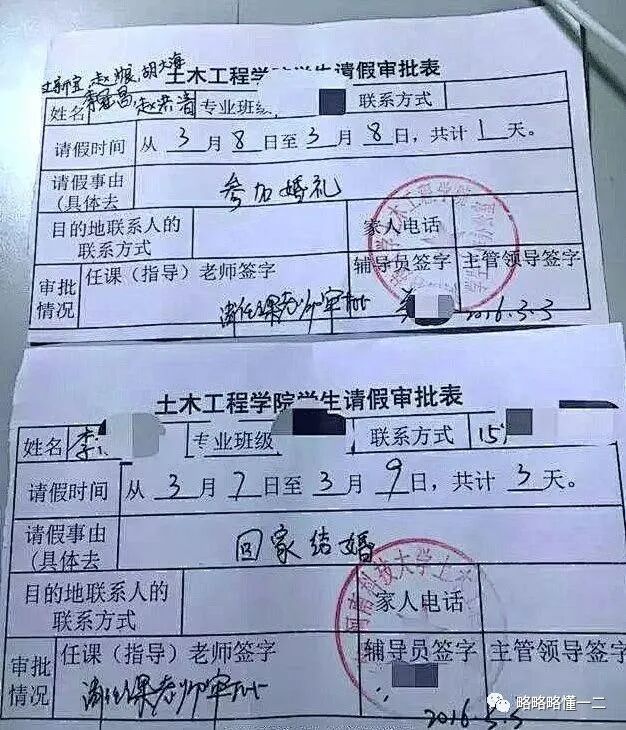 只不过我也看出来了,一个人请假回家结婚,剩下的就是室友请假参加婚礼了吧?