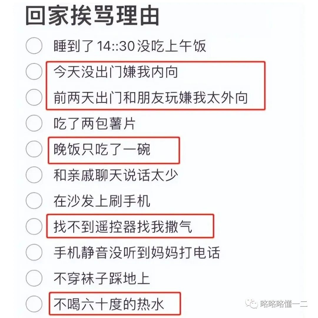当然,挨骂的理由还有很多,比如行李箱没关上、和亲戚说话少、手机静音,还有不喝热水等,大学生在学校无论多精致,回到家里都是一样的卑微啊!
