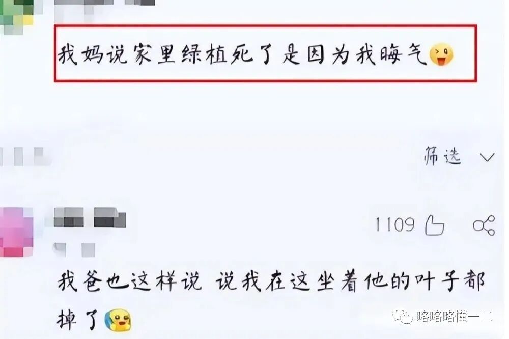 像有的家长说孩子一回家,家里的绿植死了,妈妈说因为孩子晦气,孩子当然不会多想,这名大学生说的时候还加上了“调皮”的表情,看得出来家庭气氛还是不错的。