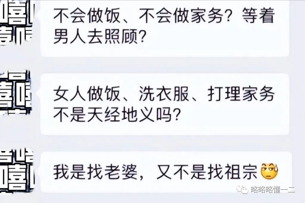 有些大学生放出来的聊天记录震碎大家的三观,男生认为女生做饭、洗衣服、打理家务是天经地义的,自己找老婆又不是找祖宗。