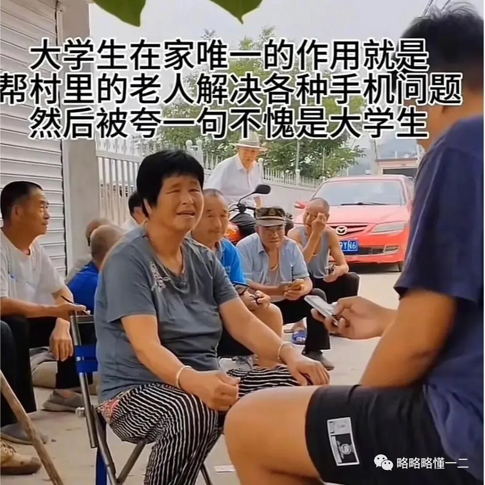 那就是大学生放假回老家的时候,看后不禁觉得确实大学生的自信都是回家后村里人给的,回村后就是“全村的希望”,大学生真就成为了稀缺人才。