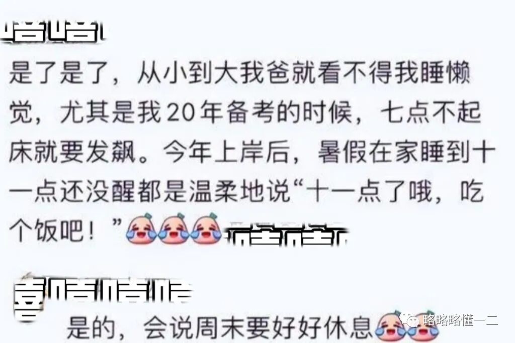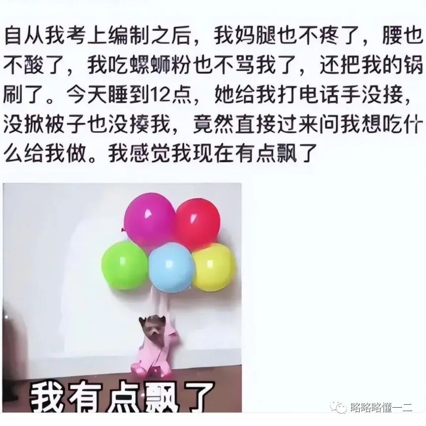 还有一名同学分享说自己考编上岸后,妈妈不烦自己吃螺蛳粉了,还能给她刷锅,睡到中午后没有挨骂,而是被妈妈问吃啥?