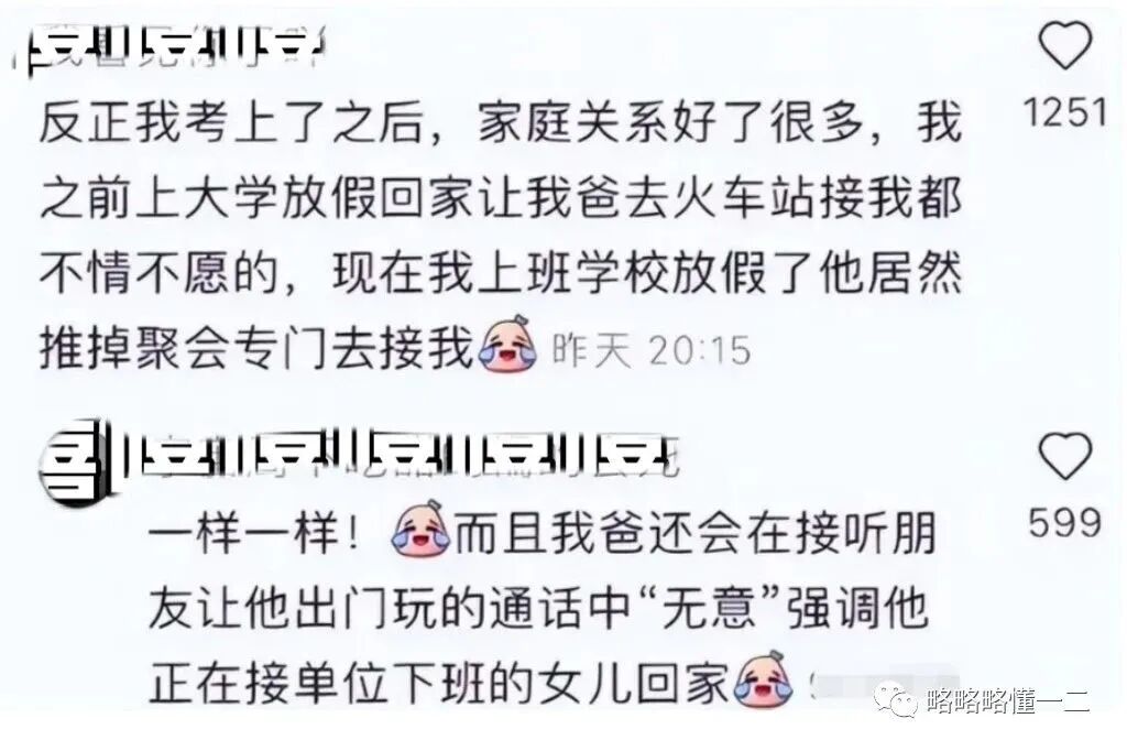 还有网友在下面回复说,自己的父亲也是一样,在父亲朋友面前还会有意无意提到接单位下班的女儿回家,父母别提多骄傲了。