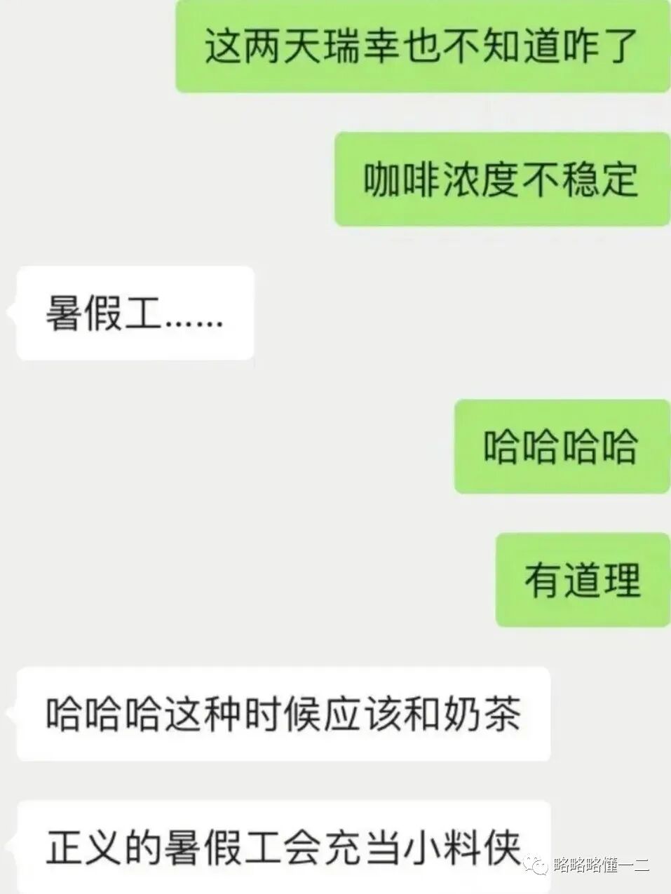 有网友说最近瑞幸咖啡也不知道怎么了,咖啡浓度不稳定,一看就是大学生操作的,于是朋友提醒了他应该喝奶茶,大学生是“小料侠”。