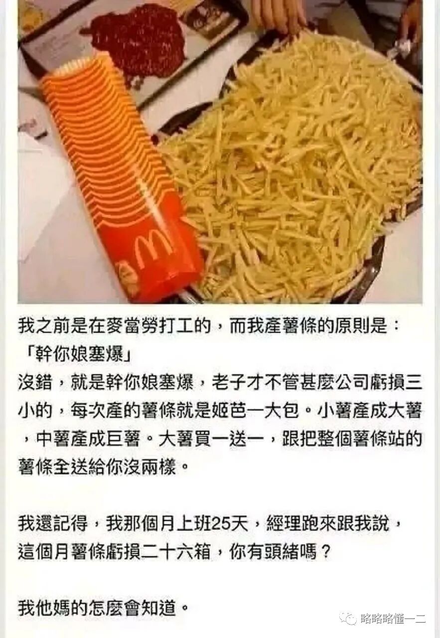 可能也是天气太热了,而这名同学的工种又是在厨房炸薯条,装薯条,于是他报复式装薯条,小薯条装成大薯条,看得出来大学生内心真的很暴躁。