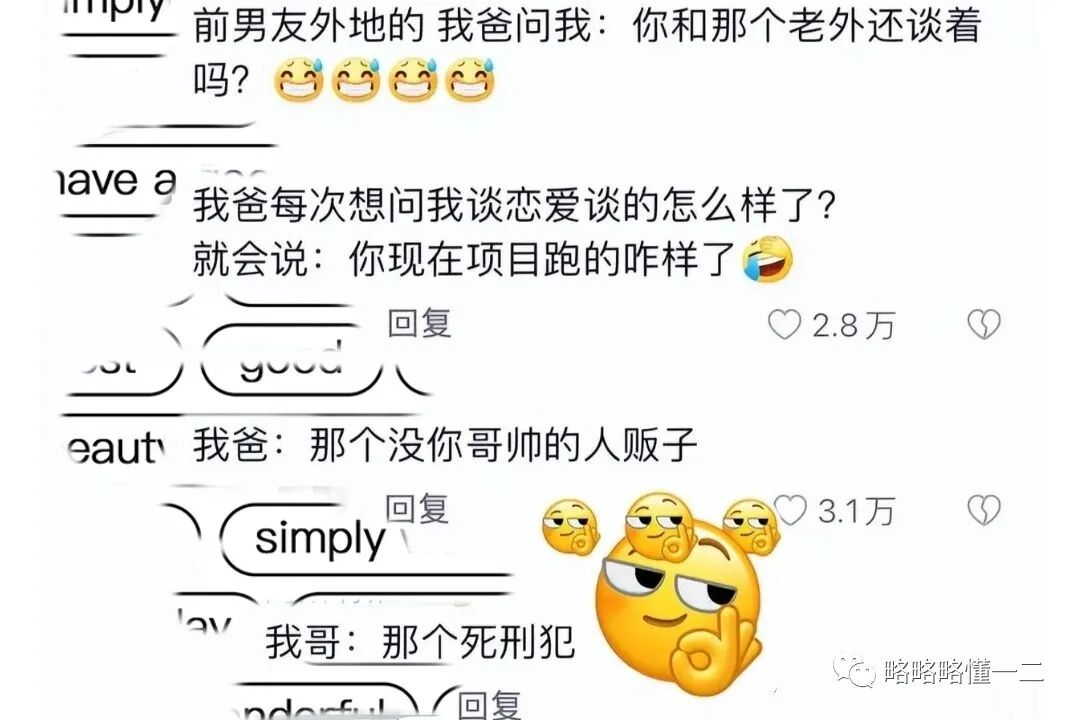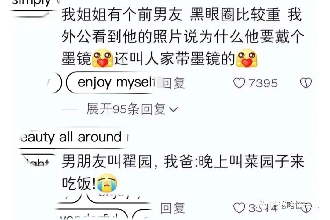 还有很多有意思的父母给女儿男朋友起的“代号”,他们会根据女儿男朋友的样貌、特点、性格、表现等起“代号”,再夹杂一些个人的情绪。