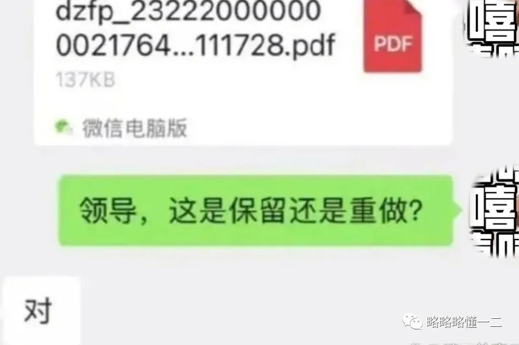 比如大学生给领导发一个PDF文件,问领导这个文件是保留还是重做,结果领导发了一个“对”!
