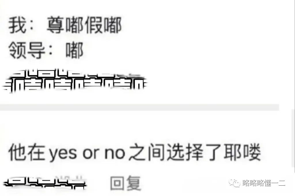 网友精准把这种情况概括为,大学生问领导:“尊嘟假嘟啊?”领导:“嘟”!真是太形象了,领导在“yes”和“no”之间选择了“耶喽”,不愧是领导。