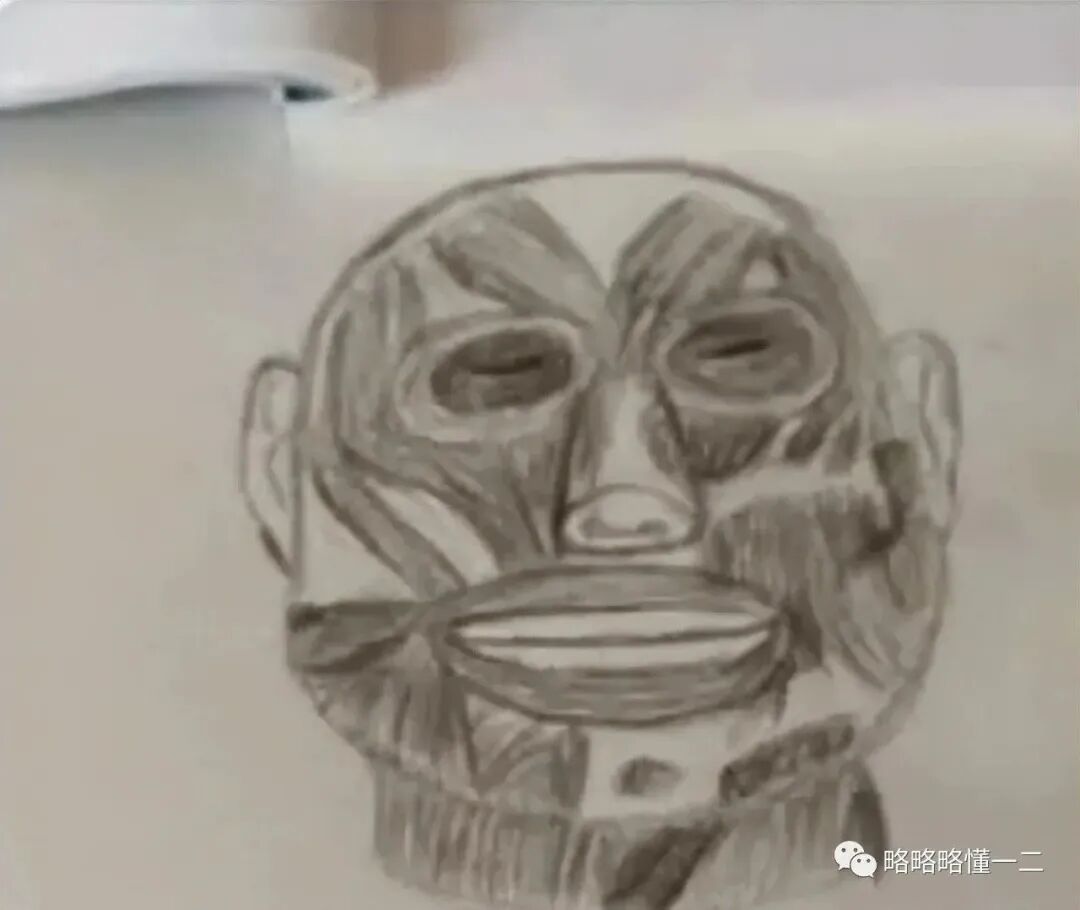 这名同学想必已经很努力在画好头部图了,但这个图一出,让学医学的同学和学习美术的同学都沉默了,五官都有,就是哪里觉得有些奇怪。
