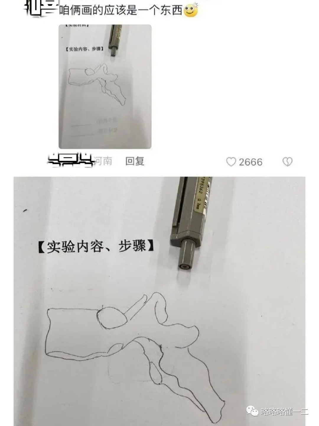 如果前面同学画的人体骨骼,大家已经觉得很好笑了,那接下来这名同学画的图绝对让人忍不住想笑出来。