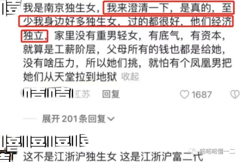 很多网友也在网上说出了对“江浙沪独生女”的印象,第一个印象就是富有了,经济独立,早早就实现了财富自由。