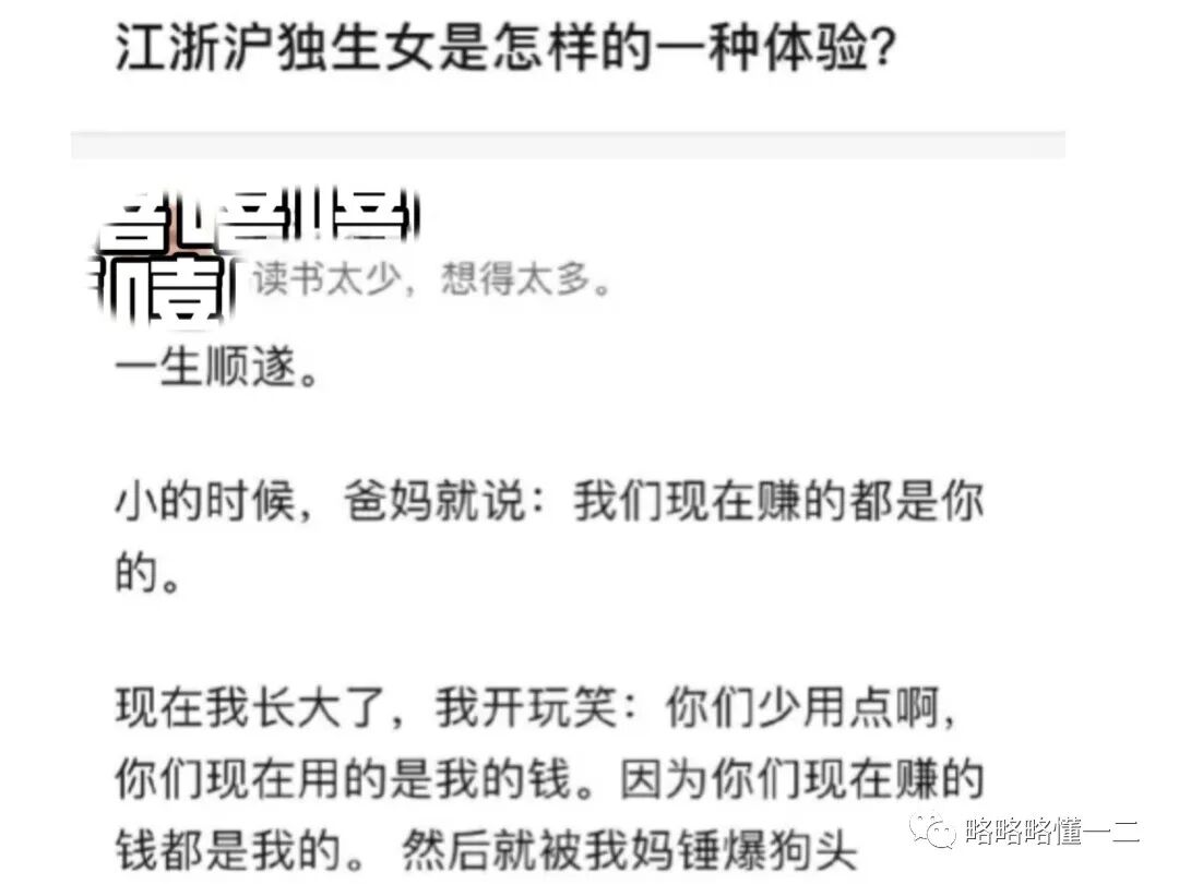 引来一大批网友们的羡慕,还有人希望下辈子投胎到江浙沪人家,成为江浙沪独生女。