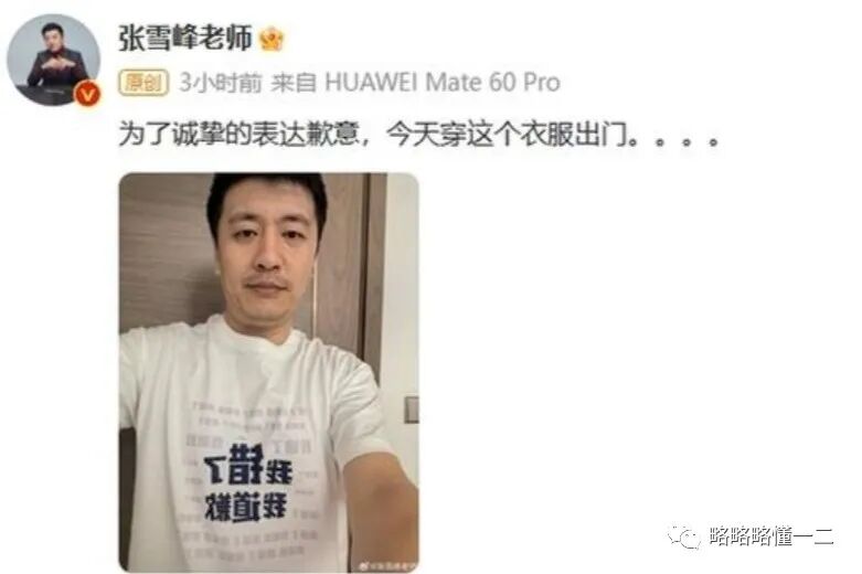 随后张雪峰又晒自拍照表示道歉,他打算穿着印有“我错了,我道歉”文字的T恤出门,道歉的态度一如既往是他的风格,不过网友调侃说,张雪峰衣服的背面是不是印着“我错了,下次还说”,网友大概是太了解他了。
