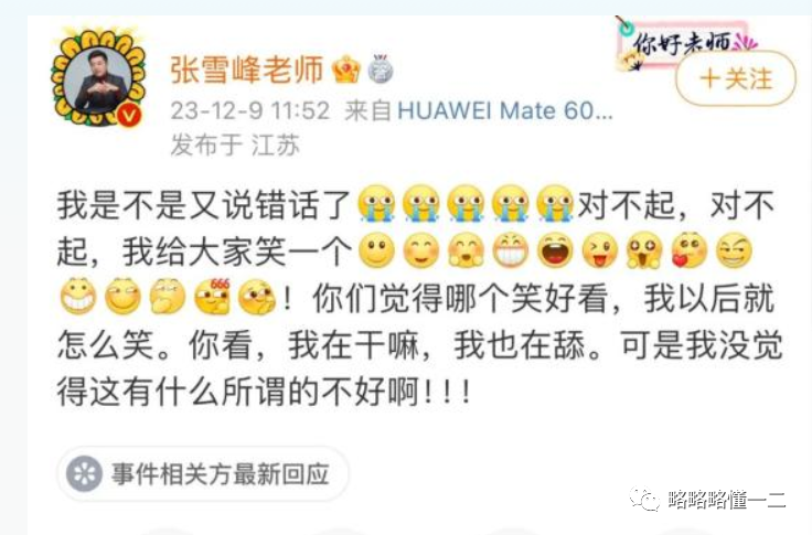 这次又上热搜了,只不过又是瞎说话了!好在态度“端正”,赶紧道歉了。