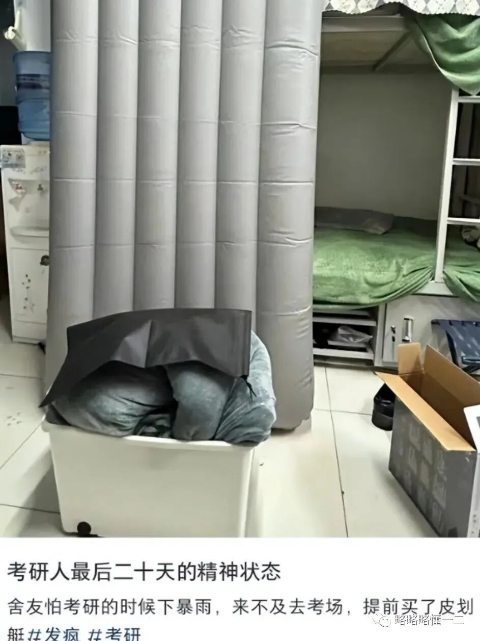 可20多天后的考研不是还在冬天吗?就算是在南方,也不至于下大暴雨吧,考研人这时候想的是什么呢?让人有些不能理解,难道是备考学习已经学疯了?