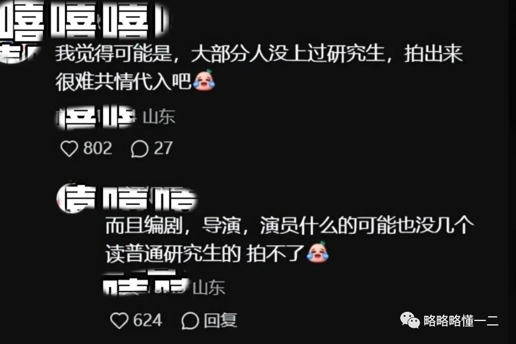 一网友的发言总结到位,这种题材的剧对于没读过研究生的人来说好骗,读研人看后就会表示拍啥不好,拍研究生的苦难生活,这也太真实了。