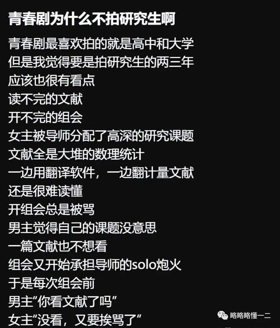过来人说出校园剧不拍研究生的原因,原因太真实了,只不过对于研究生来说,听起来还有点心酸。