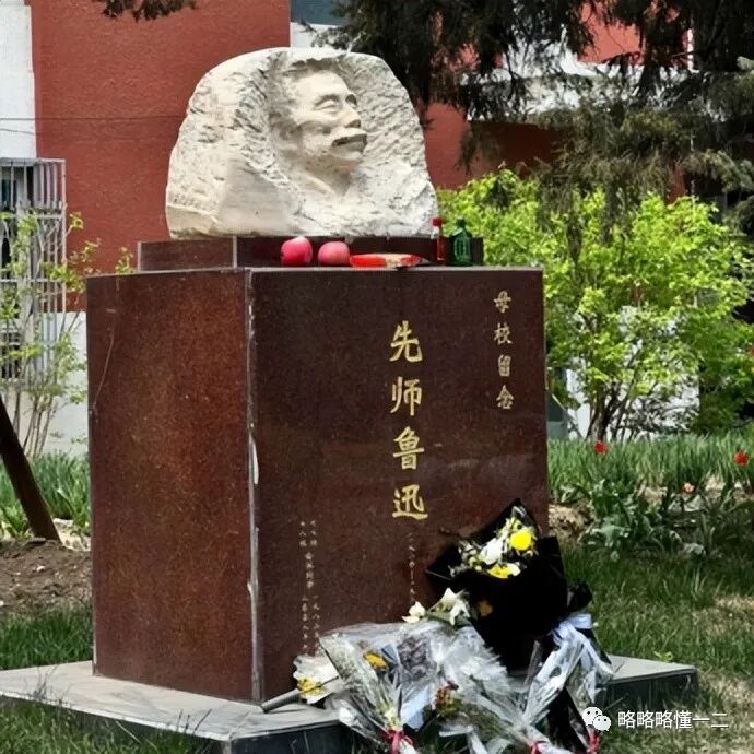 大家可以先记住一下鲁迅雕像在还没有下雪的时候是什么样,写着“先师鲁迅”,雕塑中的鲁迅颇有文学气息,温文尔雅文学大家的感觉。