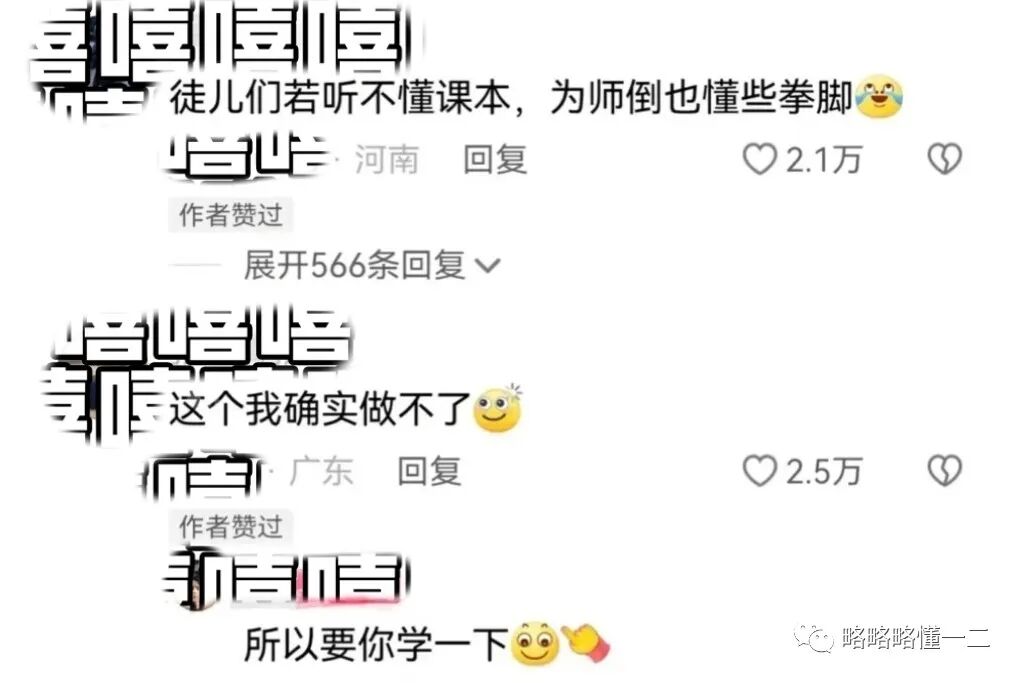 只可惜我们没有机会在课堂上听课,从同学们录的视频来看,也没有那么清晰,但有人说当时的情况是这样的,老教授说:“徒儿们,若听不懂课本,为师倒也懂些拳脚”,这位老教授真的很可爱。