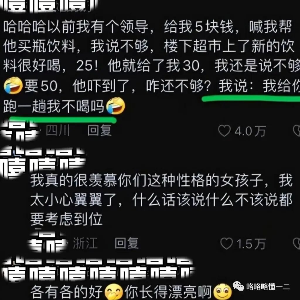 还有把领导当成朋友相处的,领导给她5块钱让她去买,她推荐超市一种新上的饮料25块钱,领导就给她30块钱。