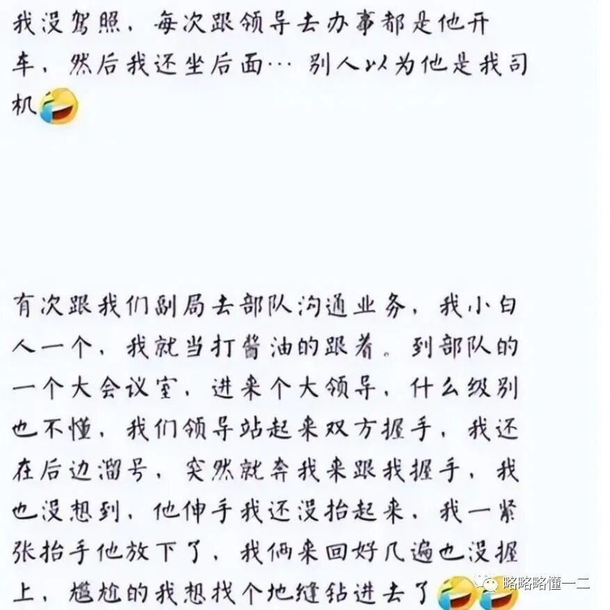 还有更离谱的,这名同学没有驾照不会开车,每次出门的时候都是领导开车,他坐在后面,这样一来就会被人误认为他是领导,而真正的领导却沦为了司机。