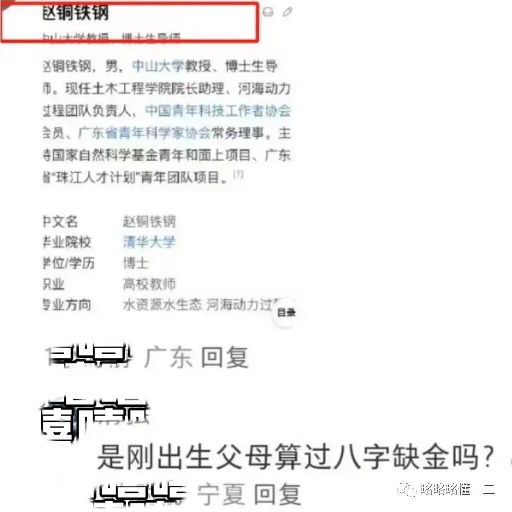 这位中山大学的博士生导师名字更厉害,叫“赵铜铁钢”,毕业于清华大学。