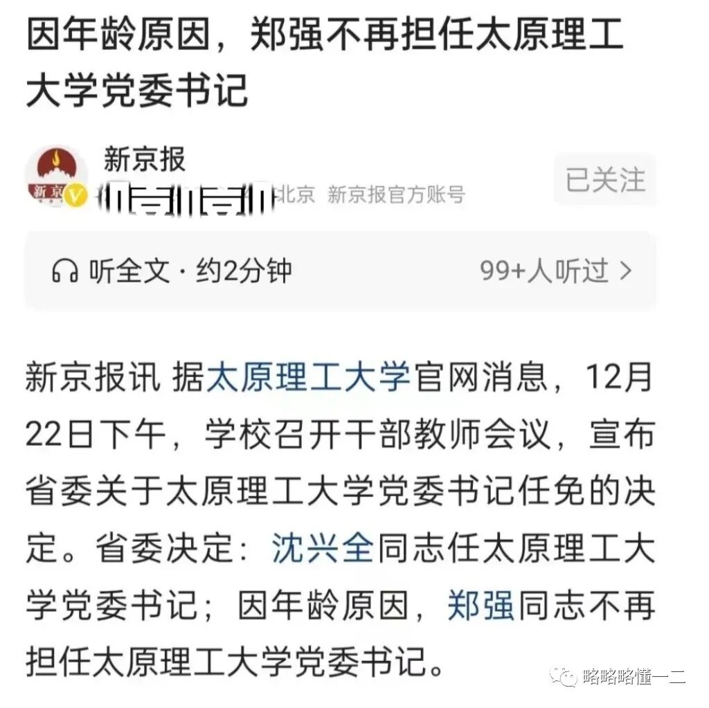 接着沈兴全担任了太原理工大学党委书记,官方给出来的理由是因为“年龄问题”。