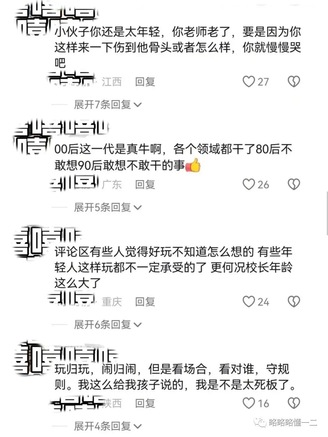 网友说大学生要是和同龄人开玩笑可以,和年纪这么大的校长开玩笑,怕是校长招架不住,而且让校长很难办。