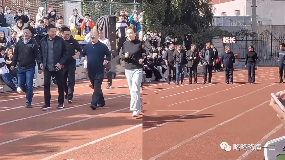 眼看校长被体育老师拉在了身后,体育老师连忙“刹车”,鞋底子都要“刹”漏了,最后校长成功获得第一名,全校皆大欢喜。