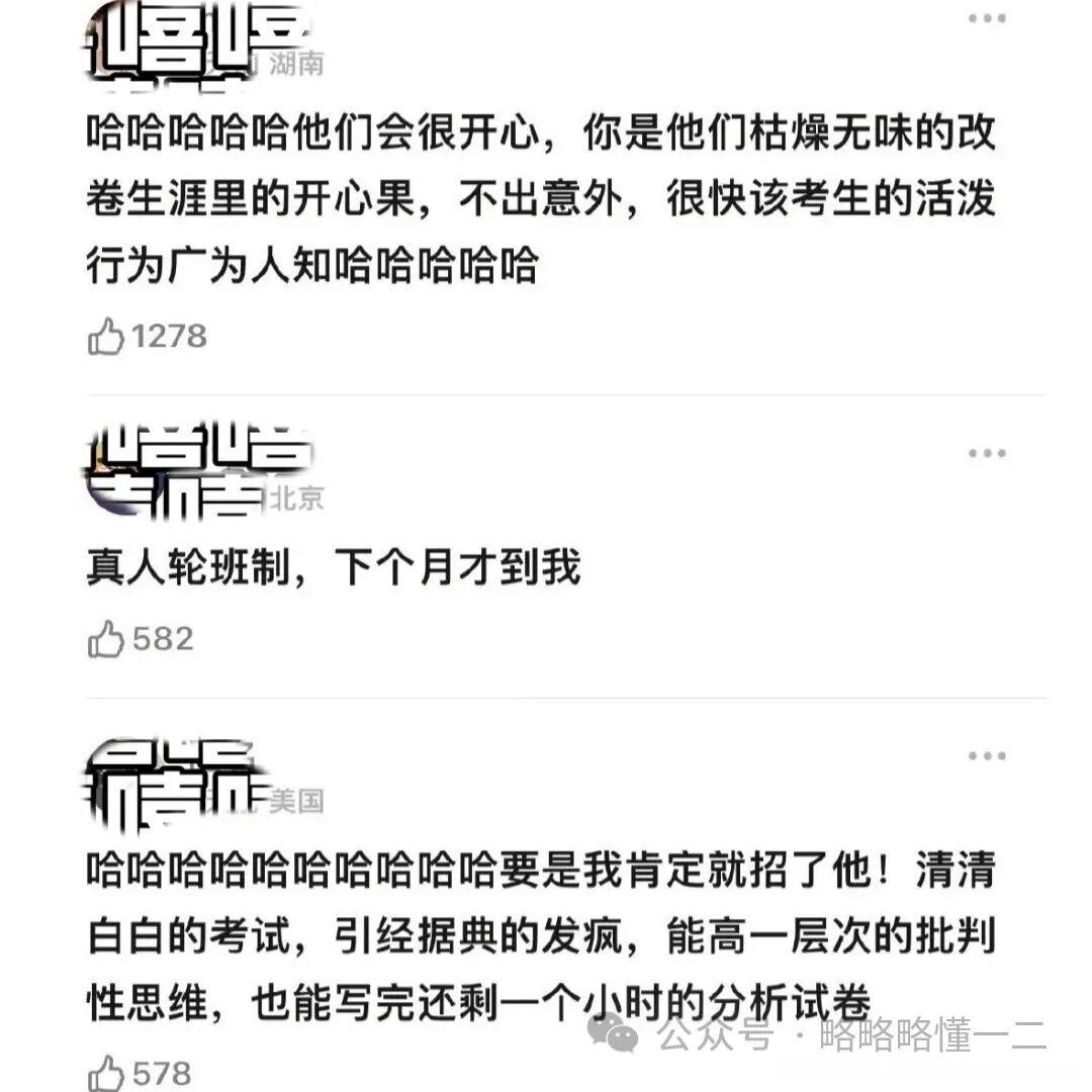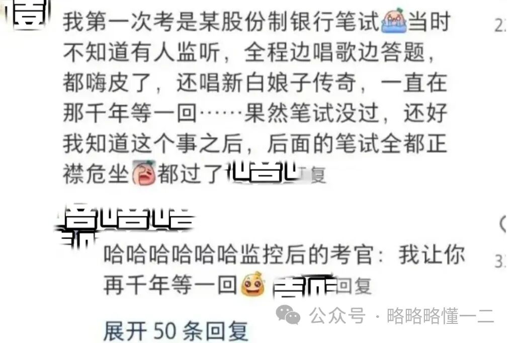 还有网友脑补了一下对面的监考老师,老师的内心是:我让你千年等一回!后来这名同学说再参加考试的时候认真答题,正襟危坐就通过了。