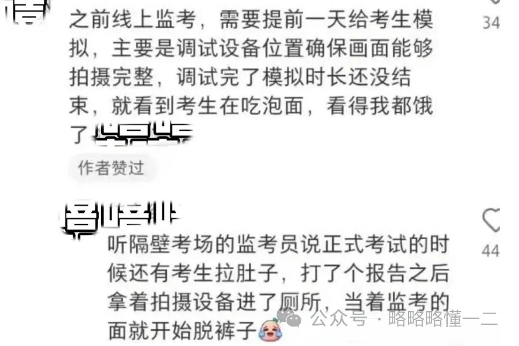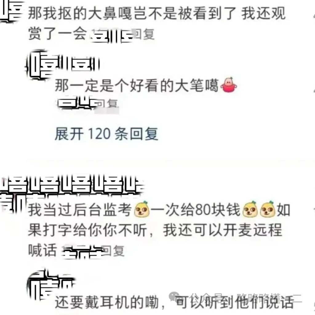 看来线上考试对面是真人监考这件事情是真的,有同学分享说自己以前考试的时候,因为在家里考试,所以行为非常“豪放”,衣衫不整还抠脚放屁又吃东西等等。