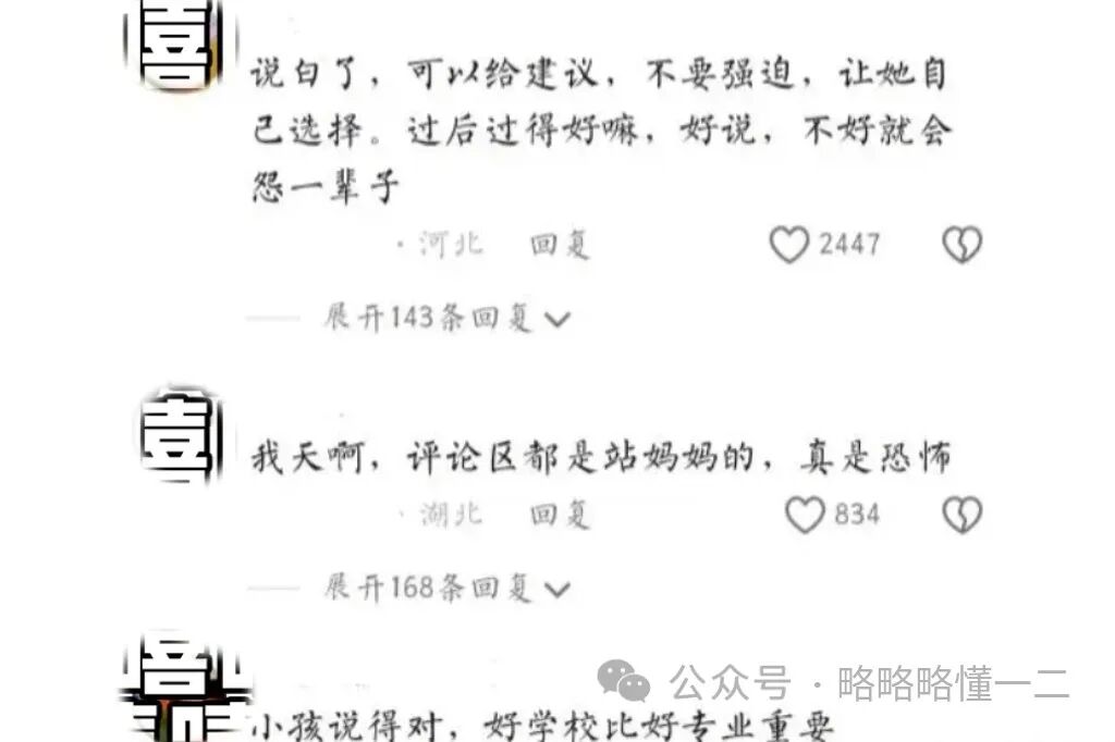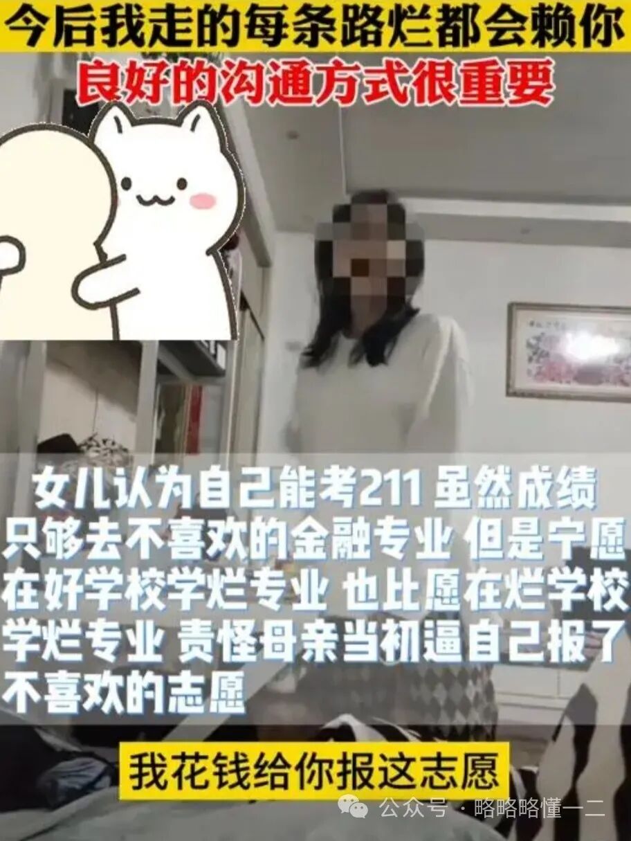现在女儿开始责怪了母亲当初干涉她报考,报考了自己不喜欢的学校和专业。