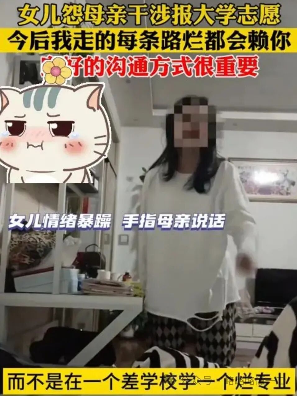 视频当中一名女大学生情绪看起来非常暴躁,而且用手指着母亲大声说自己当时的成绩能考上211,宁愿在好学校学习烂专业,而不是在一个差学校学习烂专业。