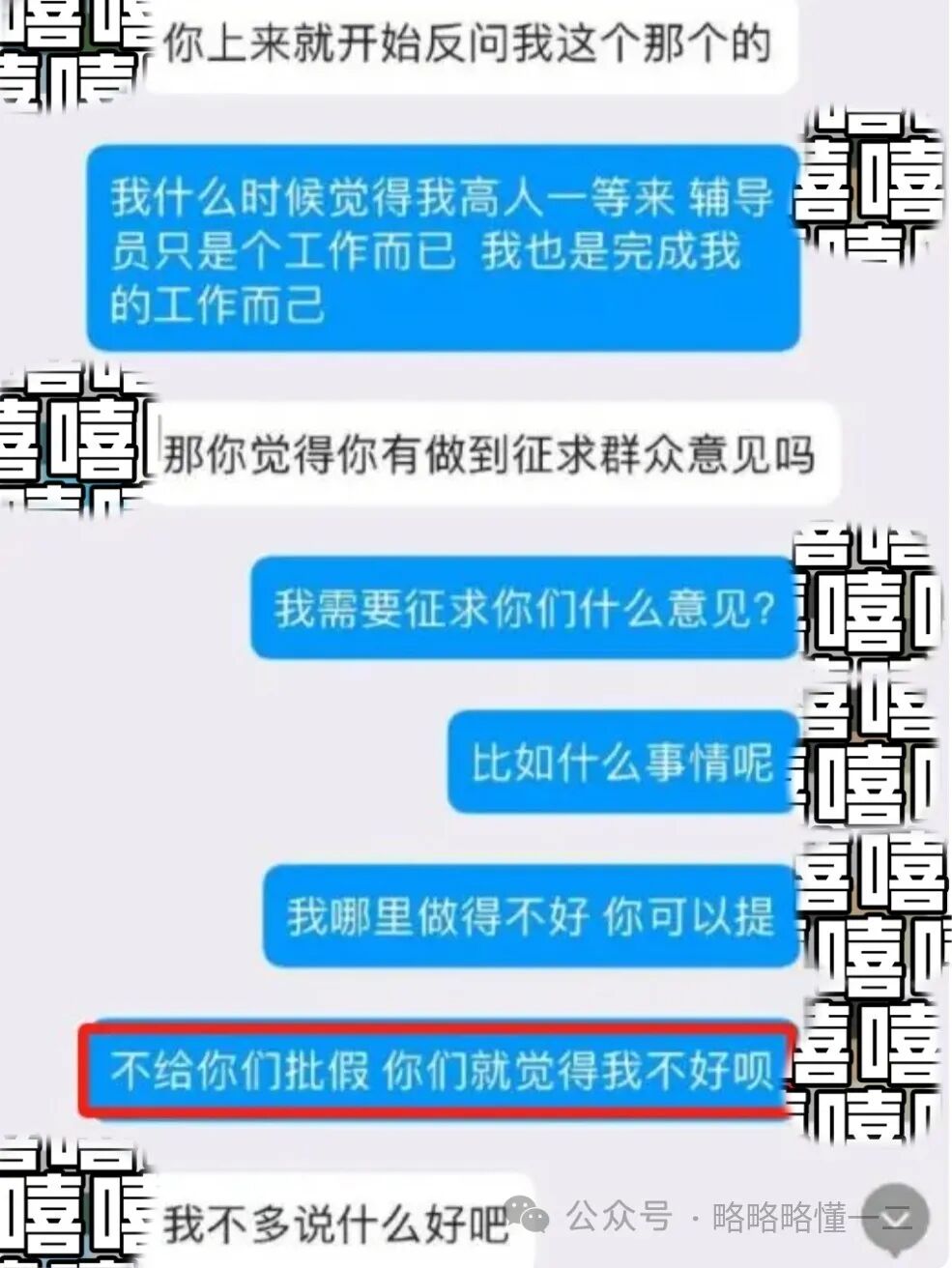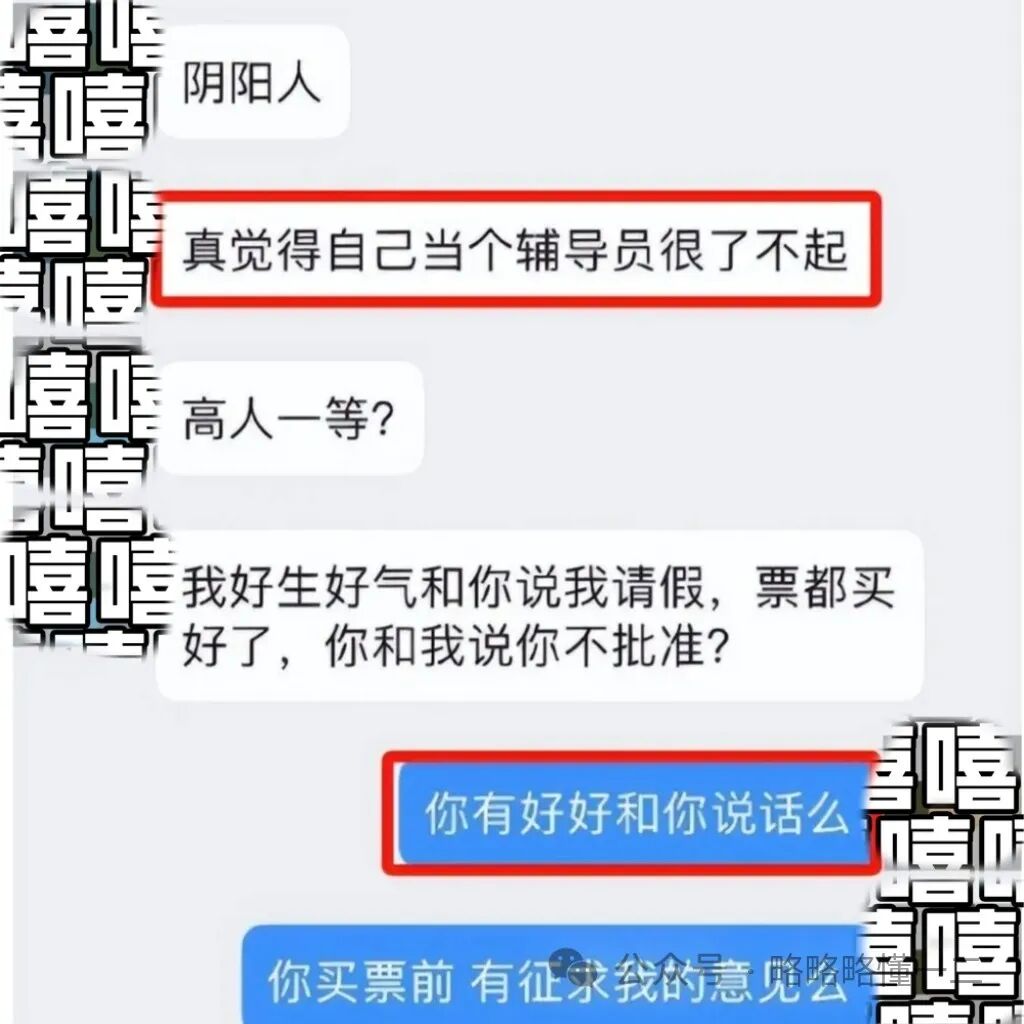 没等辅导员老师回复,大学生后面说的话更加难听,说辅导员老师真的觉得自己很了不起,高人一等,自己好声好气和辅导员请假,结果辅导员说不批。