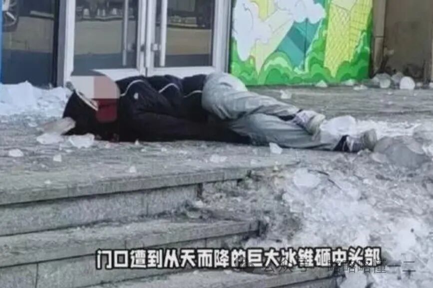 事后学校还有周边的小区第一时间发出了警示,要注意头顶的冰锥,外出时不要在建筑物附近停留,走路时多抬头看看,不要“溜墙根”走。