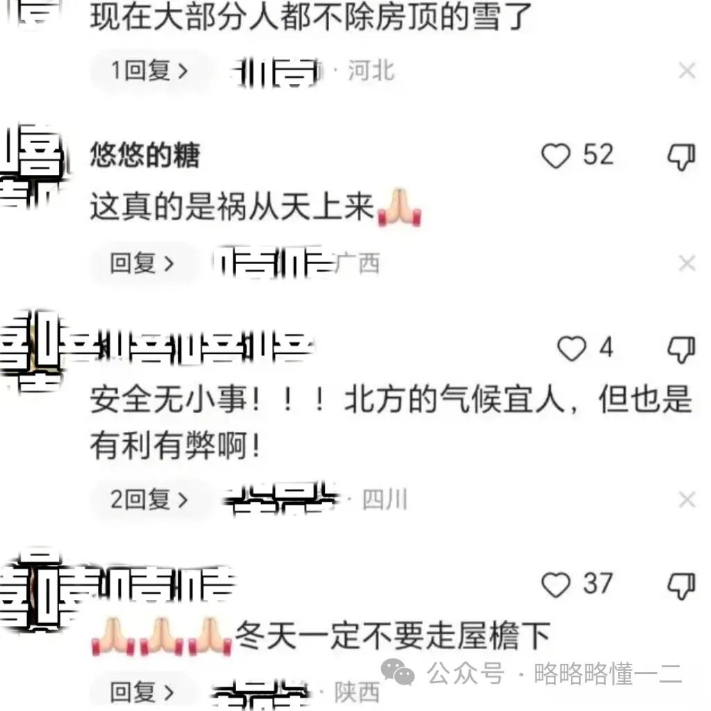 悲剧事情已经发生了,也对我们所有人来说是一个警示。走路的时候要小心,抬头看看有没有冰锥,还有在大风天也是一样,阳台上的物品容易被风刮掉砸中别人。