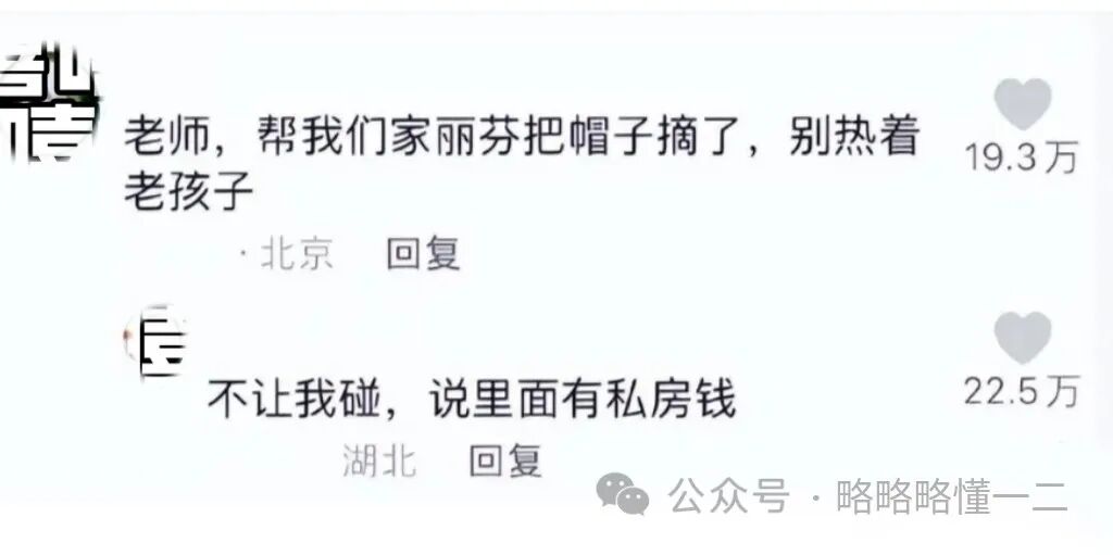 有“家崽”说:“老师,帮我们家丽芬把帽子摘了,别热着老孩子”,结果老师幽默回应,老师说不让我碰,里面说有私房钱!一句话化解尴尬局面。