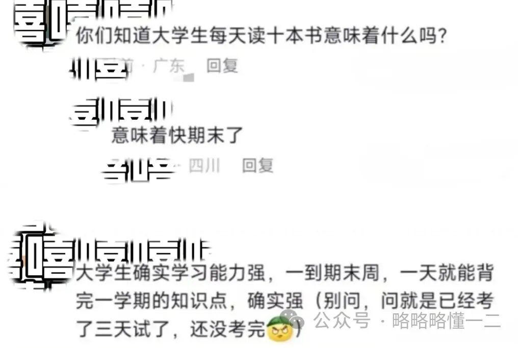 而底下大学生揭开了背后的原因,知道每天读十本书意味着什么吗?意味着大学生要期末考试了,他们那时看吗?